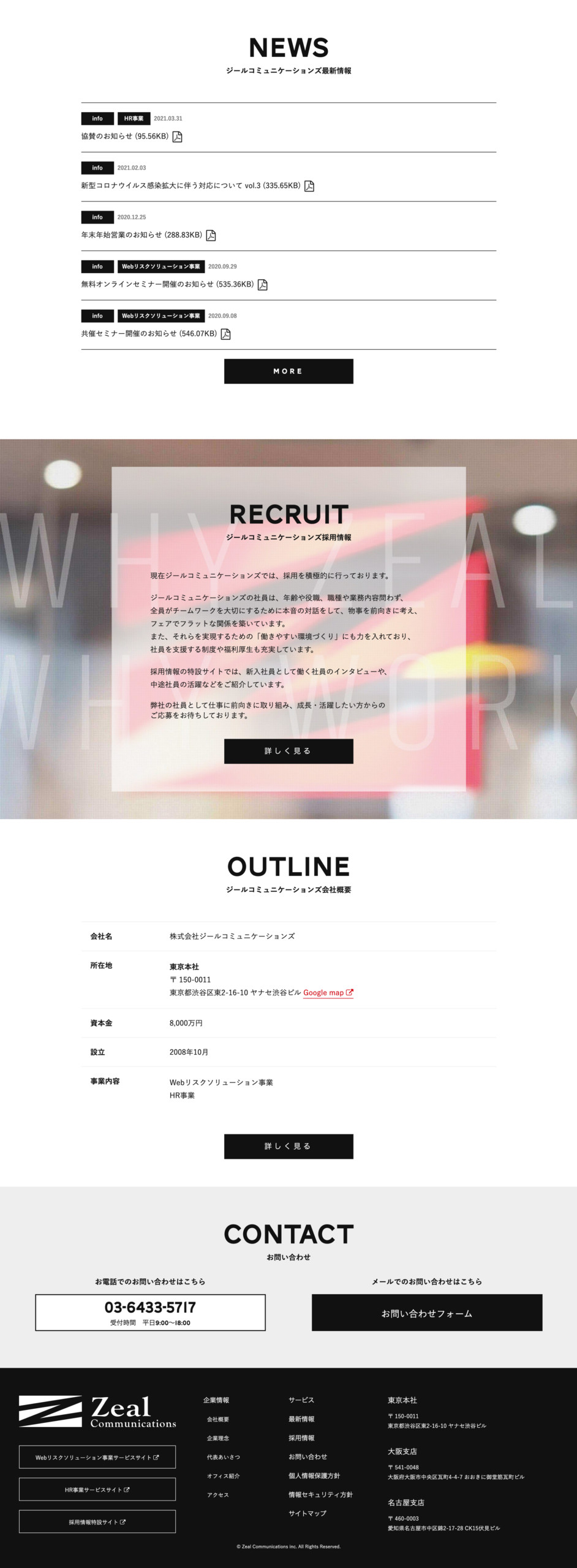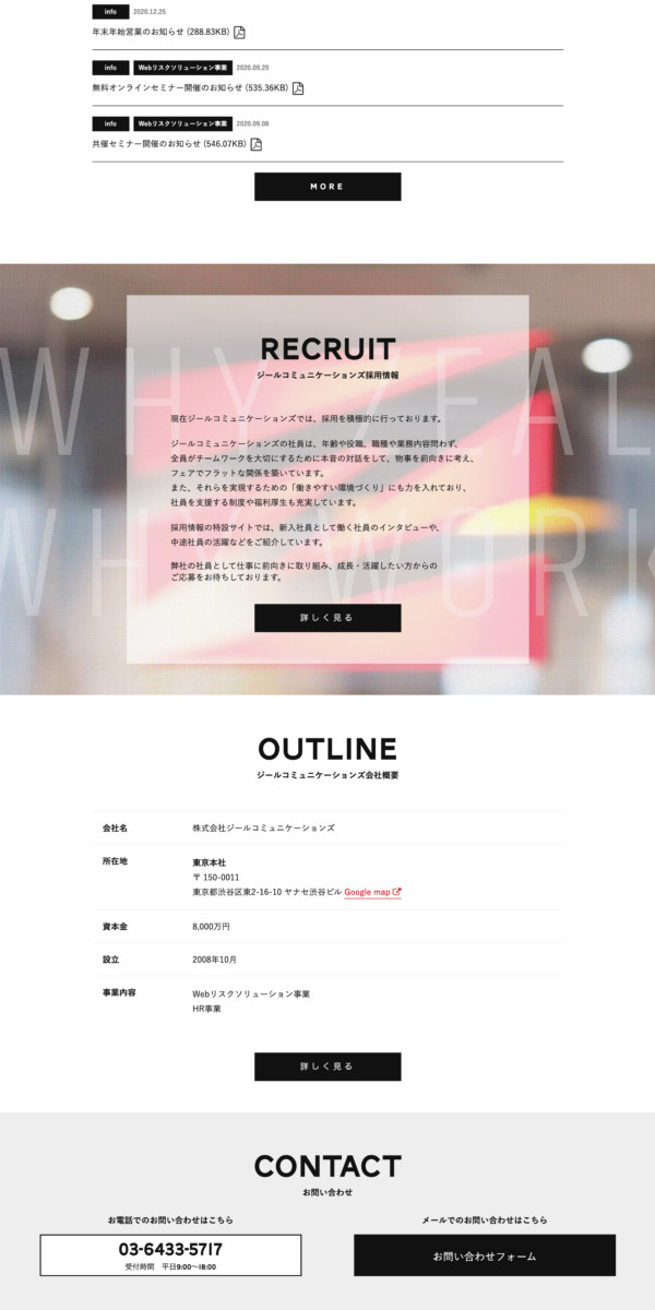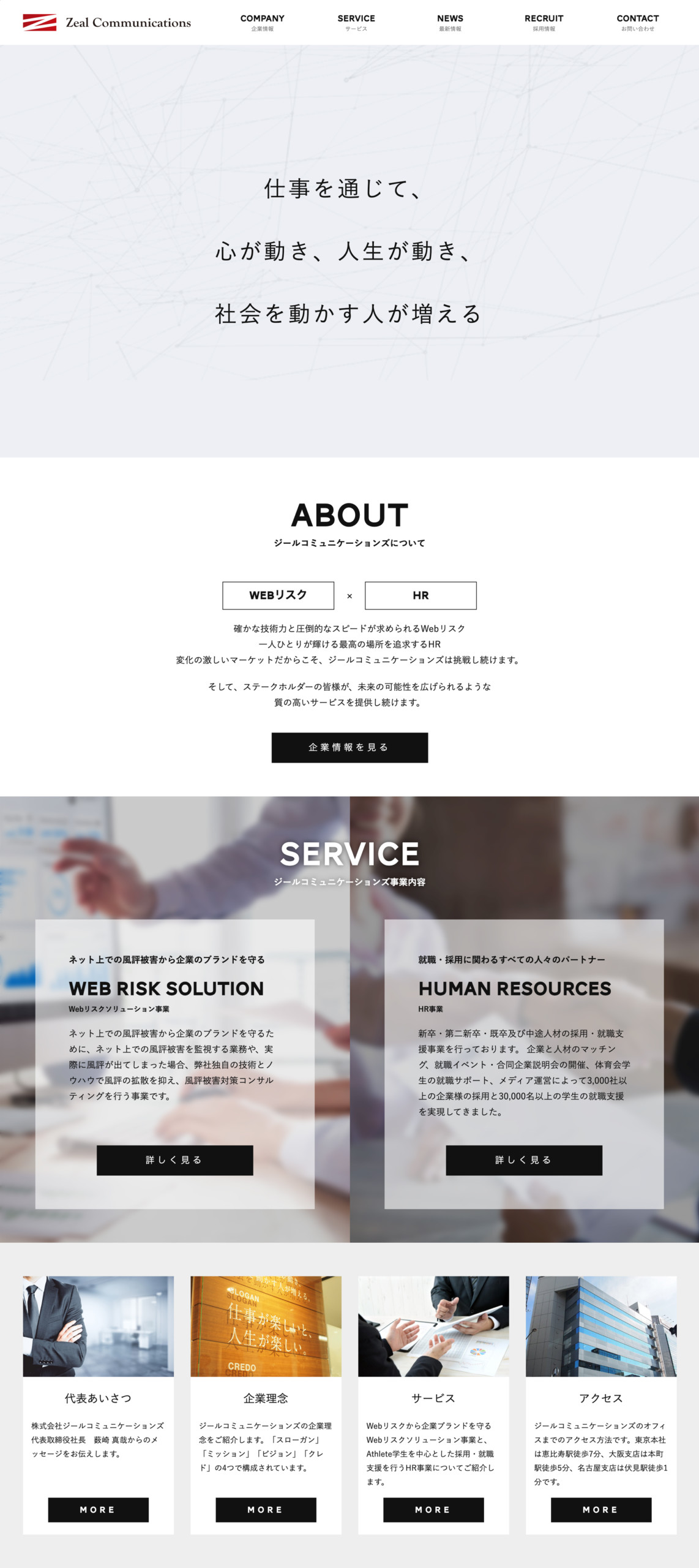 Zeal Communications Corporate Site ジールコミュニケーションズ社コーポレートサイト。 ディレクション全般、コンテンツの企画・設計、ビジュアルデザイン、インタラクション設計、フロントエンド、サーバー管理などを担当。 コーポレートサイトであるため、企業の成長(分社化・統合・上場準備など)とともに5度のメジャーリニューアル全てに携わった。 CATEGORIESDESIGN, DIRECTION, MARKETING